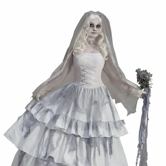 Haunting Ghostly Capes Available in haunting black and ghostly white. These capes are perfect for not only Halloween but any theatrical performance with a ghost is the start of the show. Think Dicken's A Christmas Carol! Our haunted capes are complete with dress and lace hooded cape. Fits up to size 14/16.